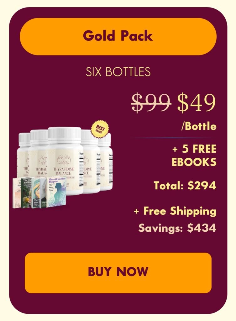 If you’re ready to restore balance and experience the full benefits of Thyrafemme Balance, simply choose your preferred package below and complete your order on the next page.